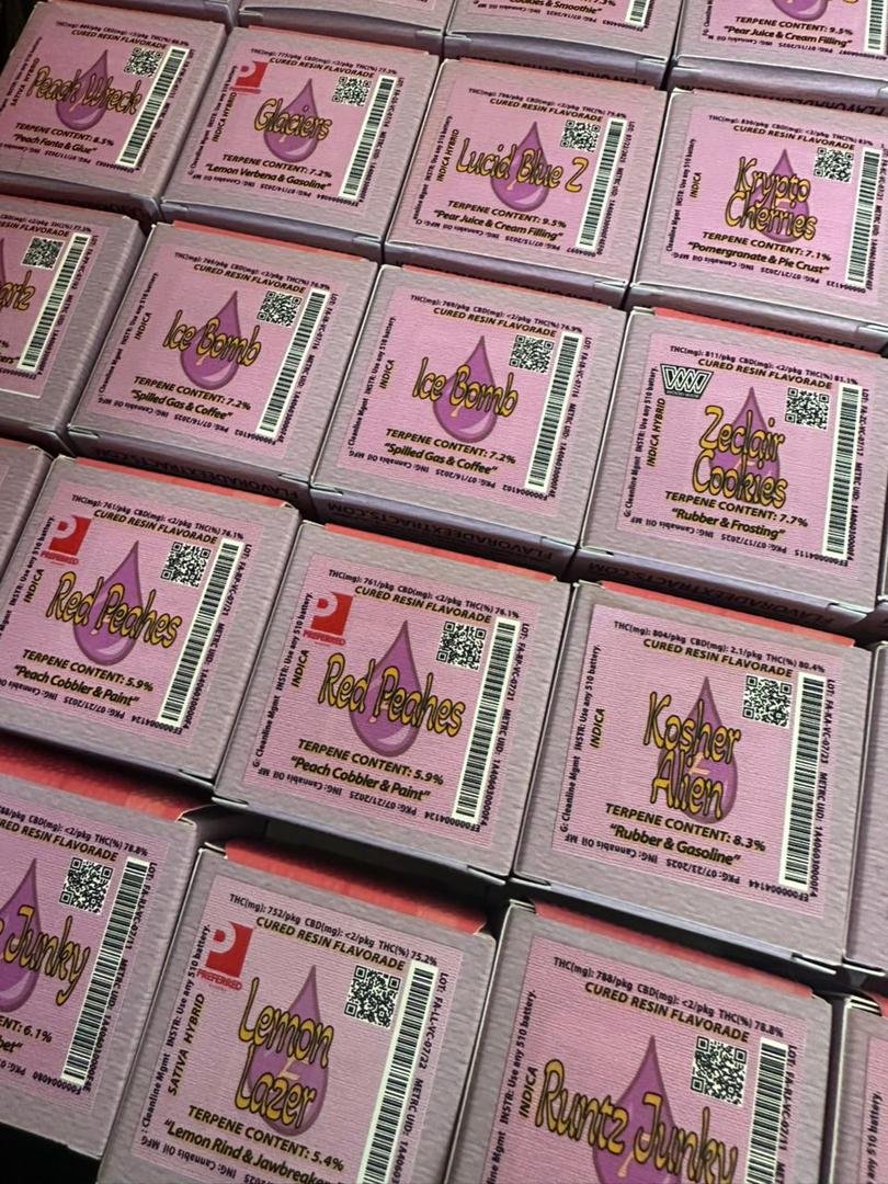 Flavor Options: Fruity, dessert-like, or classic cannabis strain flavors (e.g., Blue Dream, Mango Haze, Strawberry Diesel).